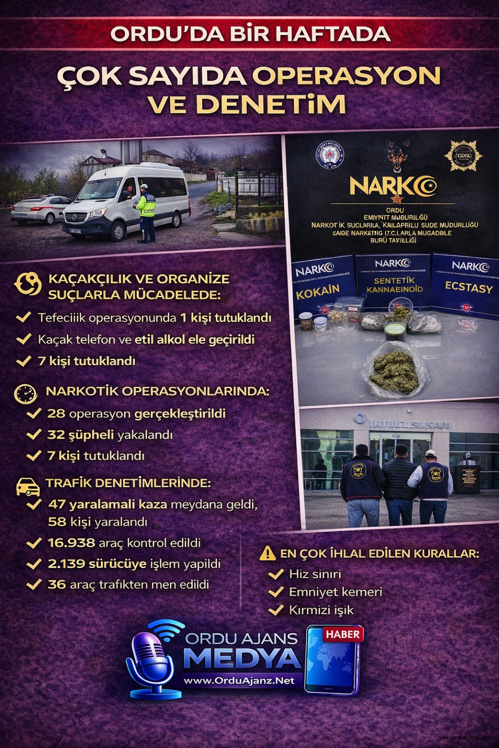 ➡️ Çok sayıda kişiye çeşitli kabahatlerden işlem yapıldı