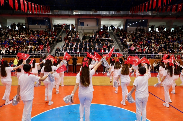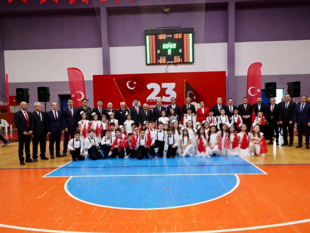 23 Nisan Ulusal Egemenlik ve Çocuk Bayramı kutlama töreni, Kutlama Programı hava muhalefeti nedeniyle Recep Kara Spor Salonunda gerçekleştirildi.