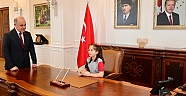 Valilik makamına oturan çocuklar, temsili olarak oturdukları Valilik koltuğunda çok mutlu olduklarını ve gururlandıklarını söyleyerek, yakın ilgisi dolayısıyla Vali Muammer Erol’a teşekkürlerini sundu.