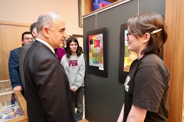 “Destanın İki Yankısı” isimli resim sergisinin açılış programında ayrıca, Milli Eğitim Bakanlığı öncülüğünde hayata geçirilen “Dilimizin Zenginlikleri Projesi” kapsamında İl Milli Eğitim Müdürlüğü tarafından hayata geçirilen ve açılışı yapılan “Afiş Tasarım Yarışması Sergisi”ne konu olan yarışmada dereceye giren Altınordu Şehit Bayram Gümüş İlkokulu öğrencisi Hilal Gökçe Kuvancı, Fatsa Şehit Ümit Karamustafa Ortaokulu öğrencisi Ceylin Nur Uçun ile Akkuş Anadolu Lisesi öğrencisi Hüseyin Gülbüz de Vali Muammer Erol tarafından tebrik edilerek, hediye takdim edildi.