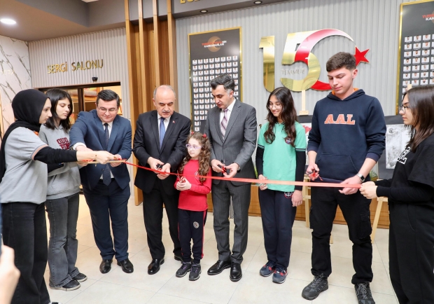 Daha sonra, 18 Mart Şehitler Günü ve Çanakkale Deniz Zaferi’nin 110. yıl dönümü dolayısıyla ‘İstiklal Marşı’nın Kabulü’ ve ‘Çanakkale Zaferi ve Şehitleri Anma Günü’ ruhunu yansıtan “Destanın İki Yankısı” isimli resim sergisinin açılış kurdelesi Vali Muammer Erol, İl Milli Eğitim Müdürü Mehmet Fatih Vargeloğlu ve öğrenciler tarafından kesildi.