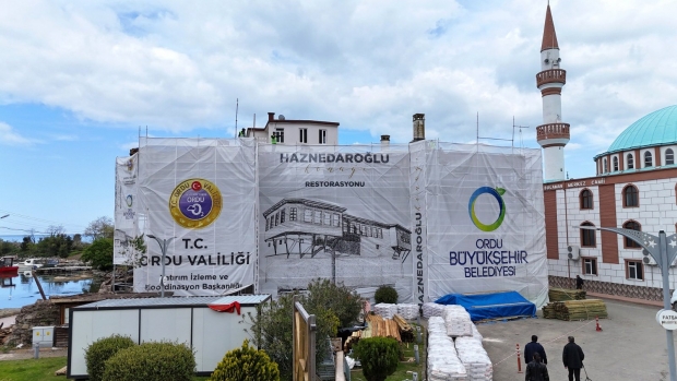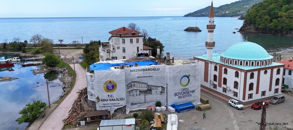 Kent müzesi olarak kullanılmak üzere Ordu Üniversitesi ile imzalanan protokol gereğince 12 yıllığına Ordu Büyükşehir Belediyesine tahsis edilen Haznedaroğlu Konağı’nda restorasyon çalışmaları sürüyor.