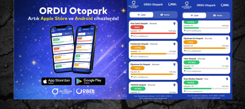 Ordu Büyükşehir Belediyesi Bilgi İşlem Daire Başkanlığı tarafından geliştirilen sistemle, vatandaşlar yola çıkmadan önce ya da seyir halindeyken hangi otoparkta boş yer bulunduğunu kolaylıkla öğrenebiliyor. Uygulama, şehir içi trafiğin rahatlatılmasına da katkı sağlamayı amaçlıyor.