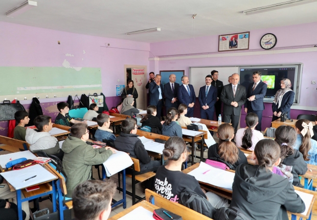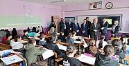 Vali Erol, daha sonra Fatih Ortaokuluna geçerek 2/B sınıfında öğrencilerini ziyaret etti ve öğrencilere yeni eğitim öğretim yılında 24 derslikli 5 atölyenin bulunduğu yeni binada eğitime başlayacaklarını söyledi ve başarı dileğinde bulundu.