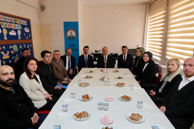 Okulda görev yapan öğretmenlerle de bir araya gelen Vali Erol, eğitim öğretim faaliyetleri hakkında bilgi aldı ve öğretmenlerin görüşlerini dinledi.
