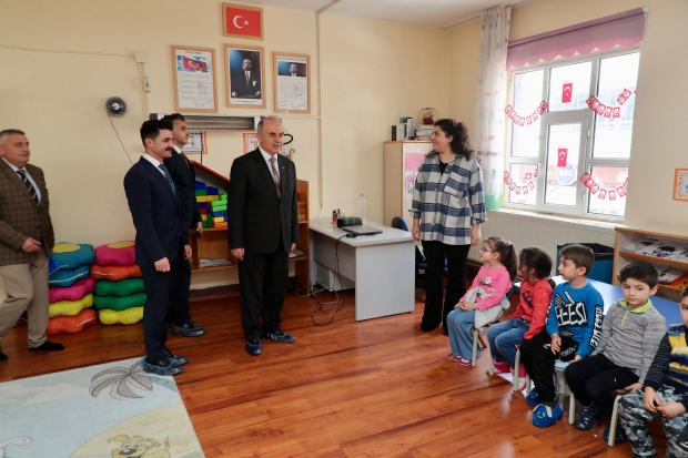 Vali Muammer Erol, eğitim yatırımları inceleme programına Akkuş Anaokulunu ziyaret ederek başladı. Burada minik öğrencilerle sohbet ederek, Sağlık ve Sosyal Güvenlik Haftası kapsamında İŞKUR tarafından hazırlanan sağlık ve güvenlik oyun kutusunda bulunan çeşitli oyuncaklar Vali Erol ve diğer protokol üyeleri tarafından öğrencilere verildi.